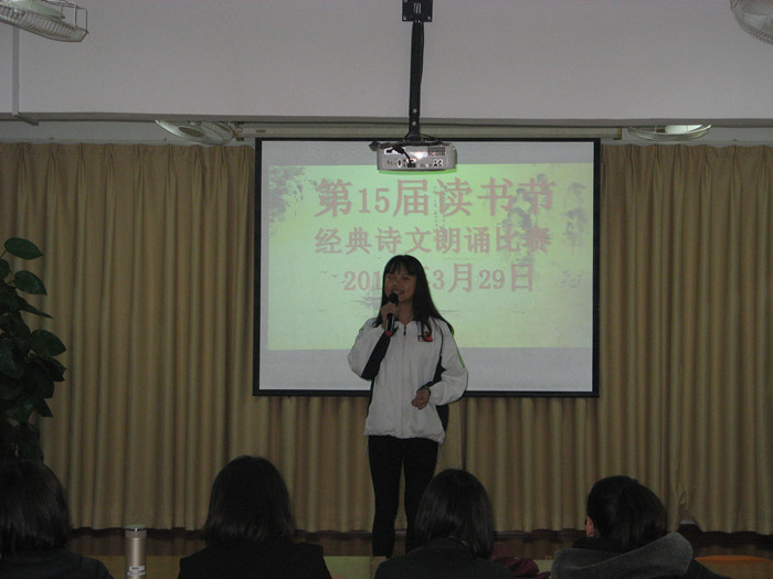 为引领同学们热爱经典,弘扬中华优秀传统文化,我校于3月27日和3月29日晚自习在图书馆阅览室举办了第十五届读书节经典诗文朗诵比赛,共有四十名选手参加了比赛。