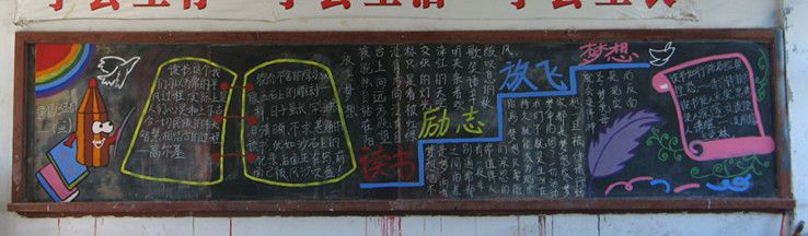 我校第十届读书节黑板报评比活动于日前结束。11月24日下午,评委们对各班制作的黑板报进行了评比,并拍照存档。此次黑板报评比活动以“读书励志、放飞梦想”为主题。各班制作的黑板报内容详实丰富、板书整洁美观、形式新颖精美。此项活动的开展,激发了同学们的读书热情,同时也为同学们提供了展示才艺的舞台。经过评比,共有18个班级获得了奖项,其中一等奖3名,二等奖6名,三等奖9名。具体获奖名单如下: