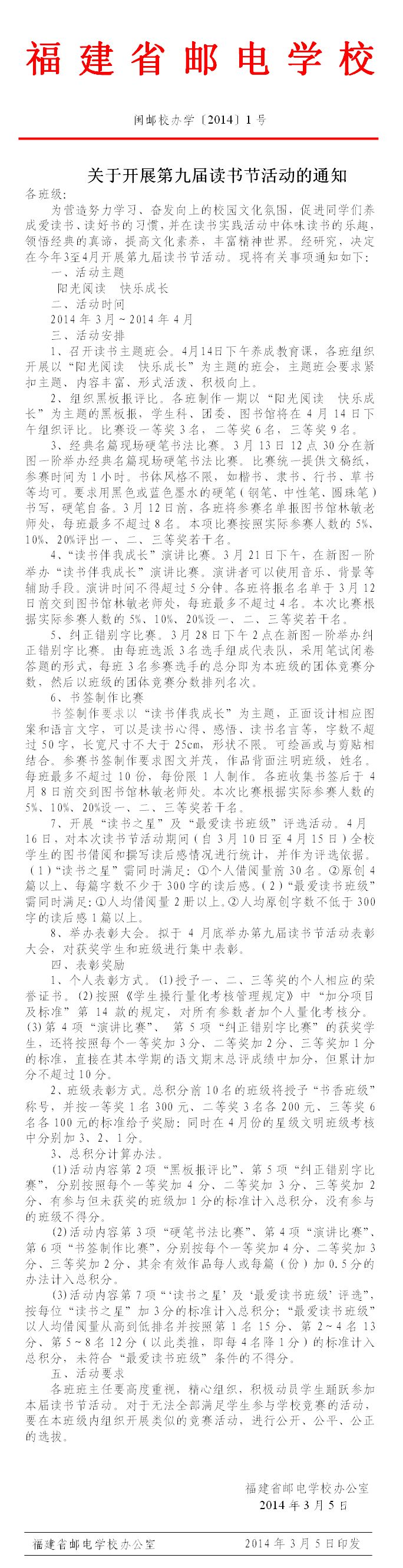 您现在的位置: 首页 > 德育教育 > 读书活动读书活动 关于开展第九届读书节活动的通知 发布时间:2014-03-06 //echo ;?> 来源:图书馆点击: 上一篇:我校第九届读书节“阅读点亮心灵,学习成就梦想”主题读书征文活动结果揭晓 下一篇:我校“爱学习、爱劳动、爱祖国”读书活动暨第八届读书节现场硬笔书法比赛结果揭晓