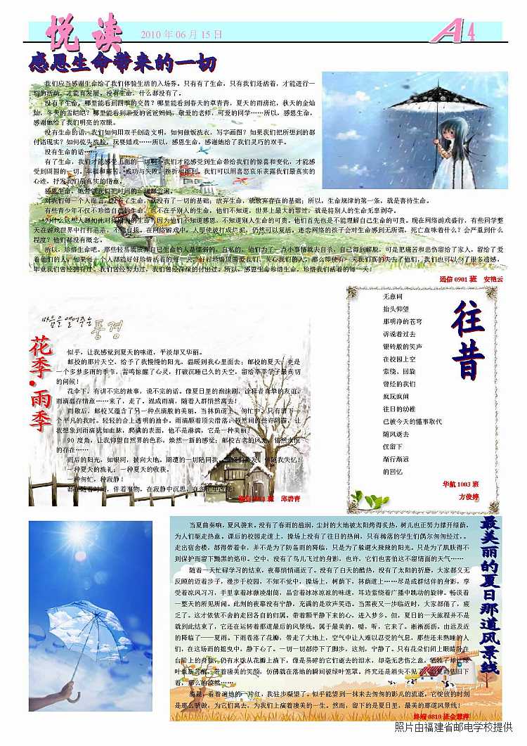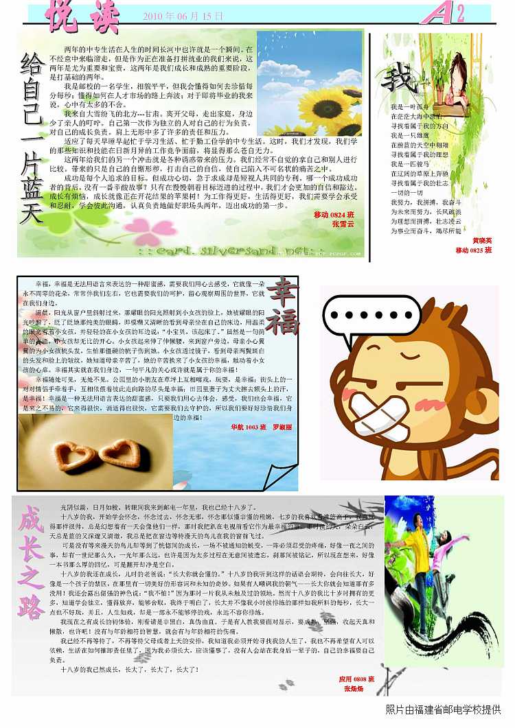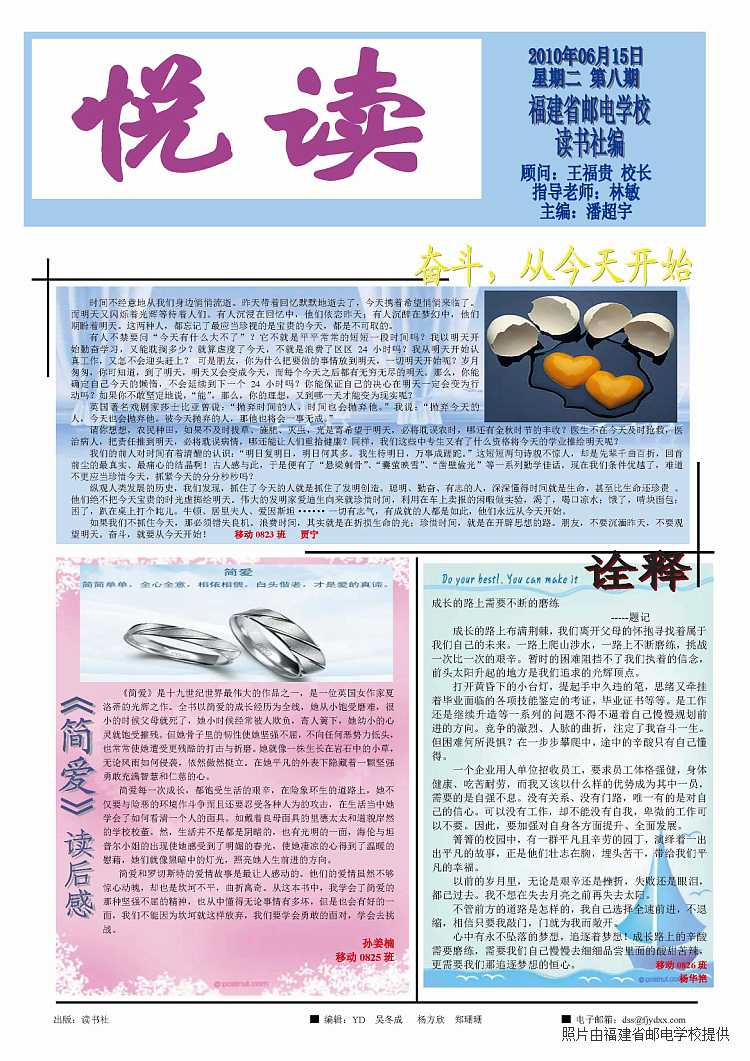您现在的位置: 首页 > 德育教育 > 读书活动读书活动 《悦读》报(第八期) 发布时间:2010-06-15 //echo 林敏;?> 来源:图书馆点击: 上一篇:图书馆“读者园地”09级黑板报评比结果揭晓 下一篇:我校英语口语比赛圆满结束