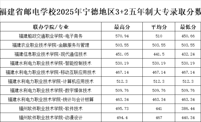 福建省邮电学校2025年宁德地区3+2五年制大专录取名单